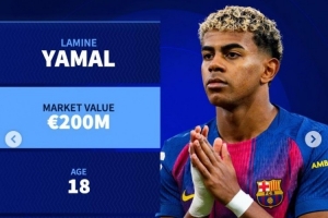 體育資訊11月9日訊 《轉(zhuǎn)會(huì)市場(chǎng)》統(tǒng)計(jì)了16歲到25歲的各年齡最高身價(jià)情況,18歲亞馬爾2億歐居首。