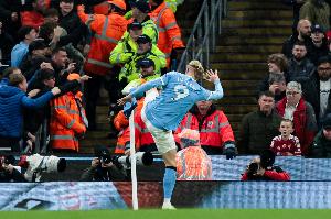 體育資訊11月10日訊 英超第11輪比賽,曼城在伊蒂哈德球場迎戰(zhàn)利物浦。本場比賽,主隊(duì)前鋒哈蘭德盡管在上半場錯失1粒點(diǎn)球,但他之后頭槌破門為球隊(duì)首開紀(jì)錄。