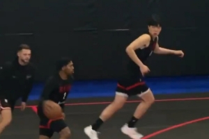 視頻當(dāng)中,楊瀚森接球上籃打進(jìn),開拓者眾將輕松備戰(zhàn)氛圍融洽。