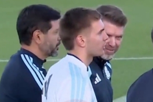 心系國(guó)家隊(duì)!馬斯坦托諾來(lái)到訓(xùn)練營(yíng),觀看阿根廷隊(duì)訓(xùn)練