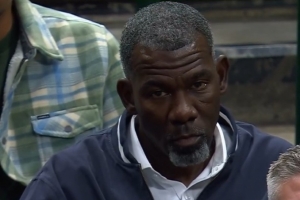 比賽中鏡頭捕捉到獨(dú)行俠名宿、臨時(shí)管理層邁克爾·芬利來(lái)到現(xiàn)場(chǎng)看球。