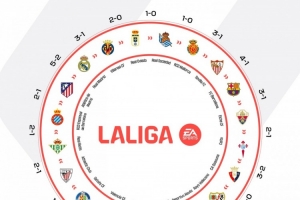 體育資訊11月13日訊 西甲官方更新社媒動態(tài),曬出本賽季各隊勝負(fù)閉環(huán)圖片。
