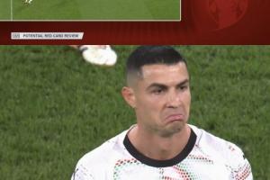體育資訊11月14日訊 葡萄牙vs愛爾蘭,C羅下半場(chǎng)因肘擊動(dòng)作被罰下。