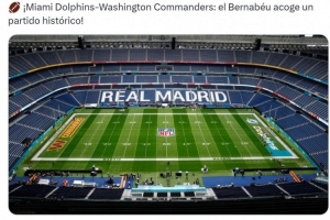 皇馬官方社媒曬出伯納烏球場準(zhǔn)備就緒的照片,配文:“邁阿密海豚vs華盛頓指揮官,伯納烏球場將迎來一場歷史性的比賽。”