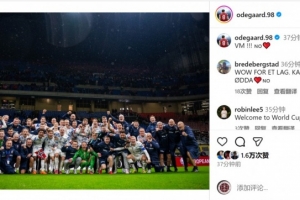 厄德高因傷缺席本場比賽,賽后他在社交媒體上曬出挪威隊大合照,慶祝球隊出線,配文:“世界杯!”
