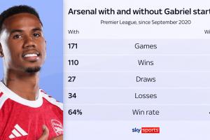 據(jù)天空體育統(tǒng)計(jì),阿森納在沒(méi)有加布里埃爾的情況下,勝率下跌多達(dá)24%。