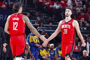 本賽季火箭隊有38.5% 的出場時間使用了雙內(nèi)線陣容。