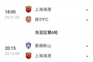 中超結(jié)束后,上海海港還將迎來兩輪的亞冠精英聯(lián)賽賽事,分別對陣首爾FC和柔佛新山。
