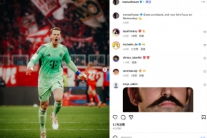 諾伊爾曬出自己的慶祝照,并配文:“偉大的逆轉(zhuǎn)!現(xiàn)在讓我們專注于周三的比賽!”