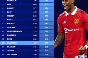 體育資訊7月24日訊 巴薩已經(jīng)官宣租借曼聯(lián)前鋒拉什福德,《轉(zhuǎn)會市場》統(tǒng)計顯示后者也已經(jīng)是曼聯(lián)隊史第13射手。