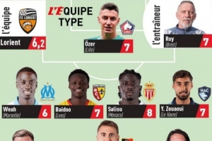 體育資訊12月1日訊 法甲第14輪戰(zhàn)罷,法媒隊(duì)報(bào)評本輪聯(lián)賽最佳陣,托萬、維阿、托利索在列。