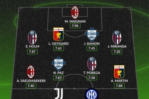 后衛(wèi):霍爾姆(博洛尼亞)、厄斯蒂高(熱那亞)、拉蒙(科莫)、米蘭達(博洛尼亞)