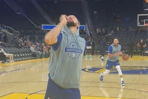 本場復出的庫里進行了賽前熱身,熱身時,他上腳了阿迪達斯球鞋,愛德華茲一代。