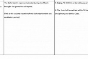 亞足聯(lián)官方表示,國安的行為損害比賽聲譽,違反亞足聯(lián)紀(jì)律和道德準(zhǔn)則第50.1條,這是國安第二次違規(guī),對國安處以6250美元罰款,罰款應(yīng)自本決定送達(dá)之日起30日內(nèi)支付。