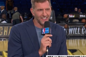 體育資訊12月17日訊 NBA杯決賽,馬刺vs尼克斯。諾維茨基擔(dān)任現(xiàn)場解說嘉賓。