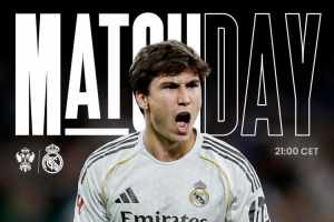 皇馬官方社媒發(fā)布了為此役制作的海報,隊內(nèi)前鋒貢薩洛·加西亞單人出鏡。