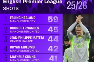 本賽季英超射門榜: