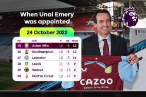 22/23賽季埃梅里于2022年10月底接手維拉,當時維拉排名英超第15,該賽季結(jié)束后維拉排名第7。隨后的23/24賽季維拉排名第4,24/25賽季排名第6,本賽季至今暫列第3。
