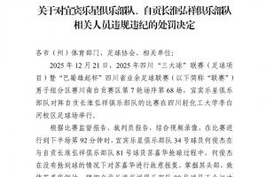 體育資訊12月22日訊 四川省足協(xié)公布處罰決定,在三大球城市聯(lián)賽中揮拳打人的宜賓樂(lè)星球員何俊杰被禁賽36個(gè)月。
