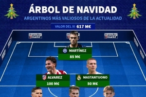 體育資訊12月25日訊 圣誕節(jié)之際,德國轉(zhuǎn)會市場排出了阿根廷身價最高圣誕樹陣容,勞塔羅、阿爾瓦雷斯、恩佐、麥卡利斯特在列。
