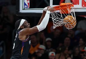 本場比賽,太陽中鋒馬威攻防兩端表現(xiàn)出色,打了27分鐘13投9中,罰球8中6拿到24分13籃板2助攻2搶斷1蓋帽,正負(fù)值+14。