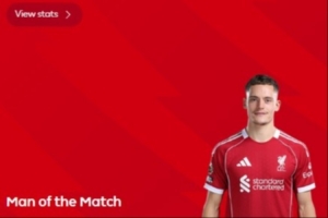 體育資訊12月28日訊 2025-26賽季英超聯(lián)賽第18輪,利物浦2-1戰(zhàn)勝狼隊(duì),本場(chǎng)首發(fā)出戰(zhàn)的維爾茨賽后當(dāng)選全場(chǎng)最佳。