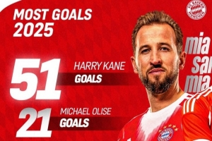 體育資訊12月28日訊 2025年即將結束,拜仁俱樂部官方也回顧總結了多項年度數(shù)據(jù):