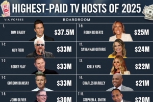 榜單的其余部分則涵蓋了深夜秀、早間節(jié)目和體育節(jié)目主持人,其中查爾斯·巴克利2100萬(wàn)美元排名第14,A·史密斯2000萬(wàn)美元排名第15。