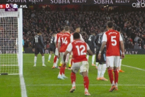 比賽第47分鐘,阿森納右路角球,大馬丁沒(méi)能拿到,足球接觸加布里埃爾后入網(wǎng)!