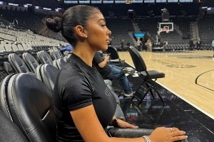 體育資訊1月6日訊 索漢的女友Mya Mills更新社媒,曬出了她觀看馬刺上一場(chǎng)對(duì)陣開拓者的比賽的動(dòng)態(tài)。