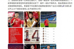 從全運會小將到今天的老將,很幸運職業(yè)生涯能一直在上海海港這么棒的俱樂部效力,感謝球隊里每一位幫助過我的人,感謝一路走來一直支持我的球迷朋友們,一起爭取勝利享受冠軍的感覺真的太好了!離開一線隊不是終點,我會用我自己的方式繼續(xù)幫助到球隊。希望若干年后偶爾還能想起曾經(jīng)有個出過14首歌??為球隊進過不止14個球??在球場上永不放棄的14號!