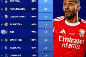 1.本菲卡 26個(gè)點(diǎn)球 命中率88%