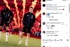 此役維爾茨為利物浦踢滿全場,賽后他在社交媒體上曬出比賽照片,配文:“我們想要更多,但仍然為能成為這支球隊的一份子感到自豪!感謝球迷在客場的支持?!?/p>