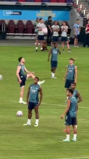 訓(xùn)練中,賴斯向小將道曼展示了一下屁股顛球,隨后道曼準(zhǔn)備模仿時,阿爾特塔路過伸手打斷了道曼的動作。