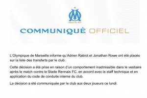 體育資訊8月20日訊 馬賽官方宣布,球隊(duì)已經(jīng)將拉比奧特和洛維列入出售名單。