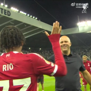 賽后,斯洛特把打進絕殺球的恩古莫哈“推”向利物浦球迷,讓他盡情享受球迷的歡呼??