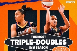 此外,托馬斯生涯至今18次三雙,WNBA至今只出現(xiàn)過47次三雙,托馬斯一人占到接近4成。
