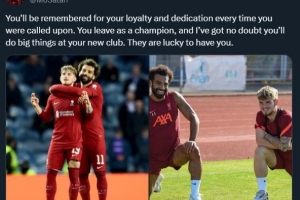 薩拉赫寫道:“你的忠誠和每一次上場所表現(xiàn)出來的投入將會被銘記,你作為一個冠軍離開,我毫不懷疑你會在新東家成就偉大事業(yè),擁有你是他們的幸運(yùn)?!?/p>