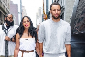 本場(chǎng)比賽,庫(kù)里攜妻子阿耶莎現(xiàn)場(chǎng)觀戰(zhàn),并被驚出表情包。