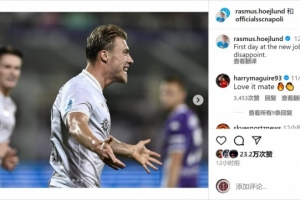 霍伊倫社媒慶祝進球和勝利,配文:“新工作的第一天沒有讓人失望?!?/p>