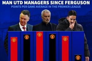 弗格森離任后曼聯(lián)各任主帥場均積分: