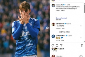 科莫本輪1-1戰(zhàn)平克雷莫內(nèi)塞,帕斯寫道:“這不是一場精彩的比賽,但我們必須始終繼續(xù)前進(jìn)!加油科莫!”