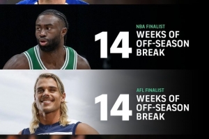 報告指出,一名頂級足球運動員的休賽期僅為3周,而相比之下,進入NBA總決賽的籃球運動員、AFL決賽的澳式橄欖球運動員以及MLB決賽的棒球運動員,其休賽期分別長達14周、14周和15周。
