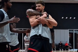 體育資訊10月2日訊 近日在火箭隊(duì)內(nèi)的訓(xùn)練中申京面對(duì)亞當(dāng)斯的防守貢獻(xiàn)了一記暴扣,之后又在后者面前投進(jìn)了一個(gè)三分,結(jié)果慘遭海王“鎖喉”。
