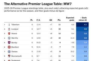 體育資訊10月2日訊 根據(jù)The Athletic統(tǒng)計,曼聯(lián)預(yù)期進(jìn)球12.3個,實(shí)際進(jìn)球7個,是英超實(shí)際進(jìn)球與預(yù)期進(jìn)球相差最大的球隊。