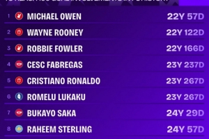 體育資訊10月5日訊 英超第7輪比賽,薩卡點(diǎn)射破門,幫助阿森納主場(chǎng)2-0擊敗西漢姆,薩卡成為達(dá)成英超參與100球第7年輕的球員。