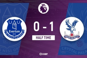 傷停補時2分鐘。上半場比賽結束,埃弗頓0-1水晶宮。