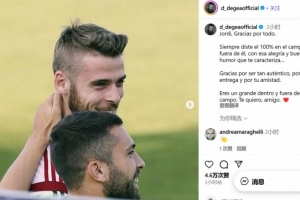 體育資訊10月8日訊 不久前,德赫亞更新了社交媒體,致敬宣布本賽季結(jié)束后退役的阿爾巴,兩人曾經(jīng)是西班牙國家隊的隊友。