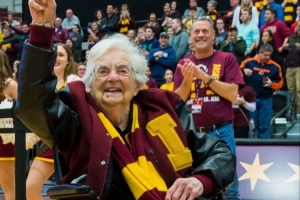 她在全美被廣泛報道是因?yàn)樵?018年,她隨校隊出席瘋狂三月賽事,那一年他們成為黑馬打進(jìn)了最終四強(qiáng)。而Sister Jean在比賽中因?yàn)橘惽皫ш犉矶\、坐在場邊鼓勵球員、給他們精神支持而受到了廣泛關(guān)注。