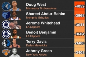 歷史上總正負(fù)值最低的10位球員!96屆拉西姆入選 有人場(chǎng)均-7.1分